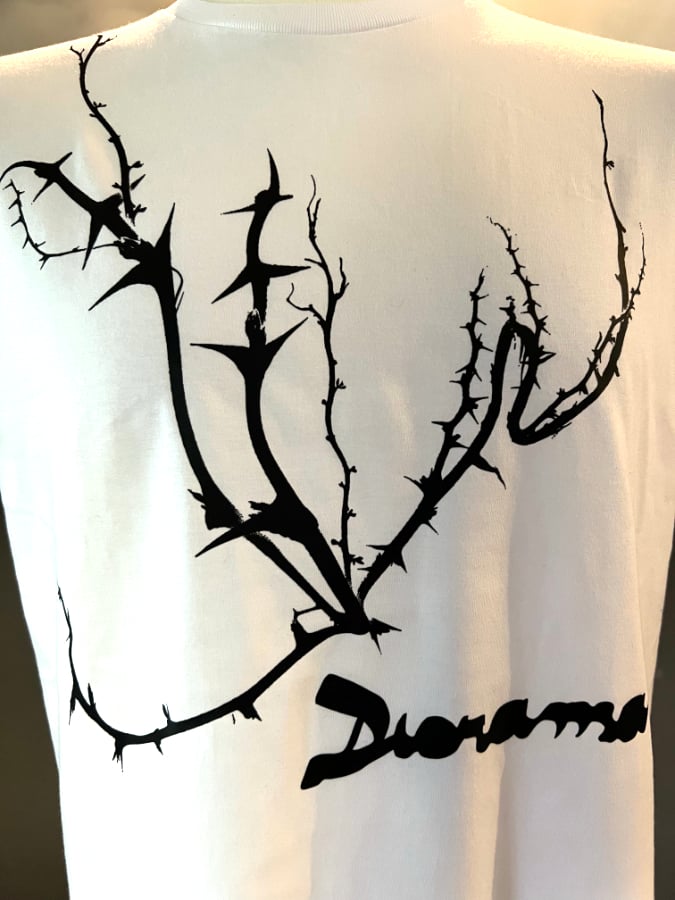 modern white men's shirt (sol's) with large black "diorama thorn“ print. regular cut.