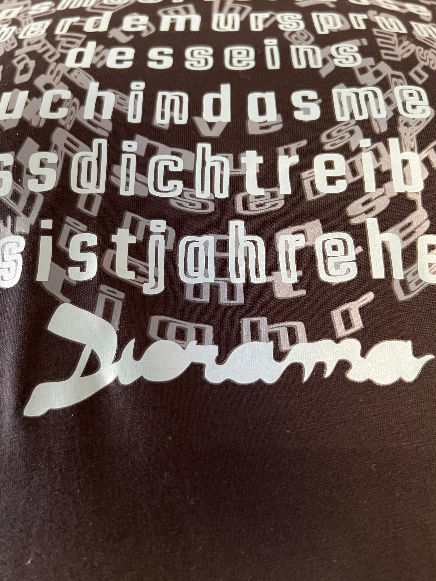 vegan, fair trade and climate friendly t-shirt (earth positive series) with rollup sleeves ans bicolor "das meer" print. diorama logotype (also bicolor) on the back.